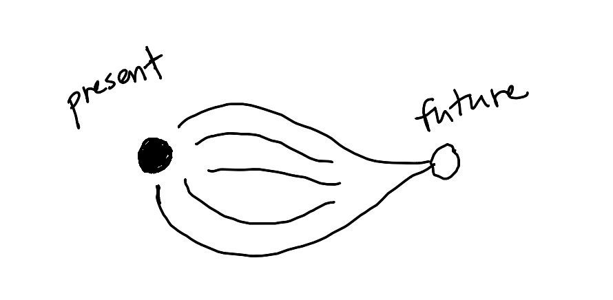 When I don’t want my eyes interfering with my thinking, I write cursive backwards. The thoughts flow forward and get documented, but the words are unreadable to me in real time, which means the thinking stays uncontaminated by what I’ve already written. I previously thought of it as a way to override ADHD and unlock creativity. I didn't realize it at the time, but this bidirectional thinking was the the critical blueprint I needed to build a communication system that reads one way in the present, and an entirely different way in the future.